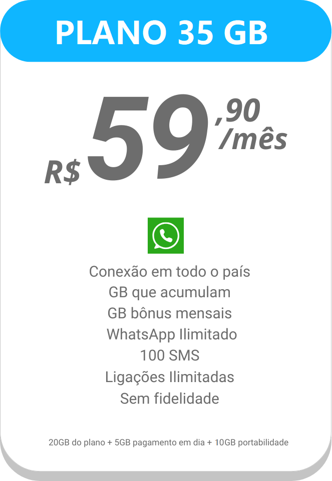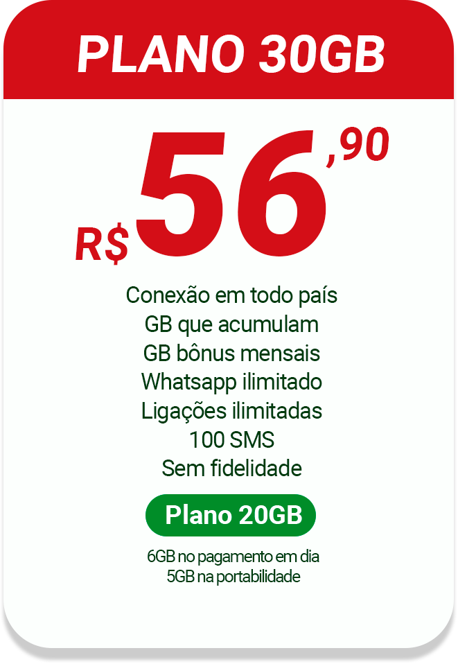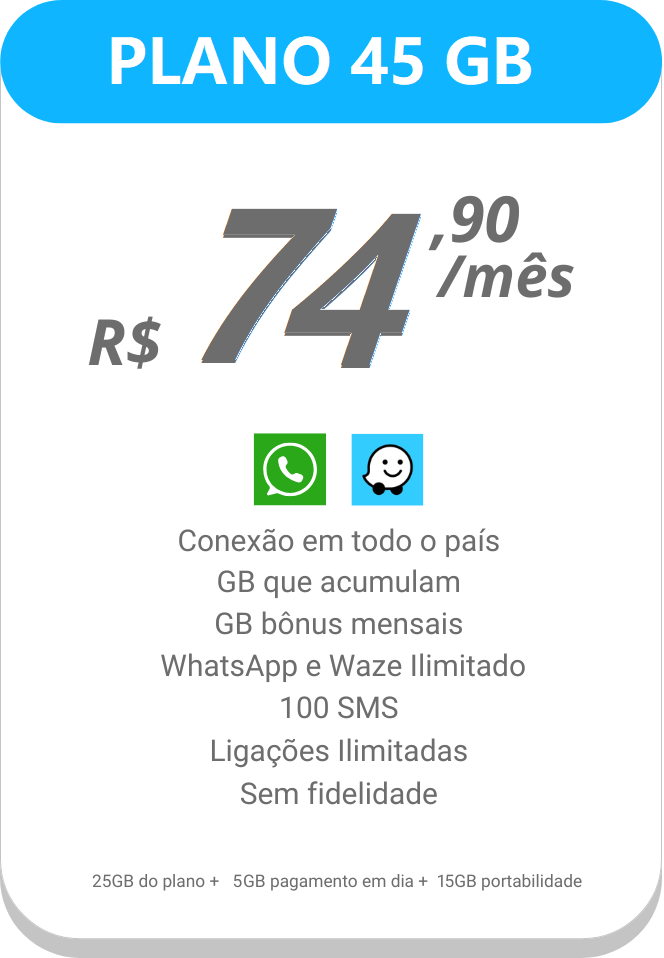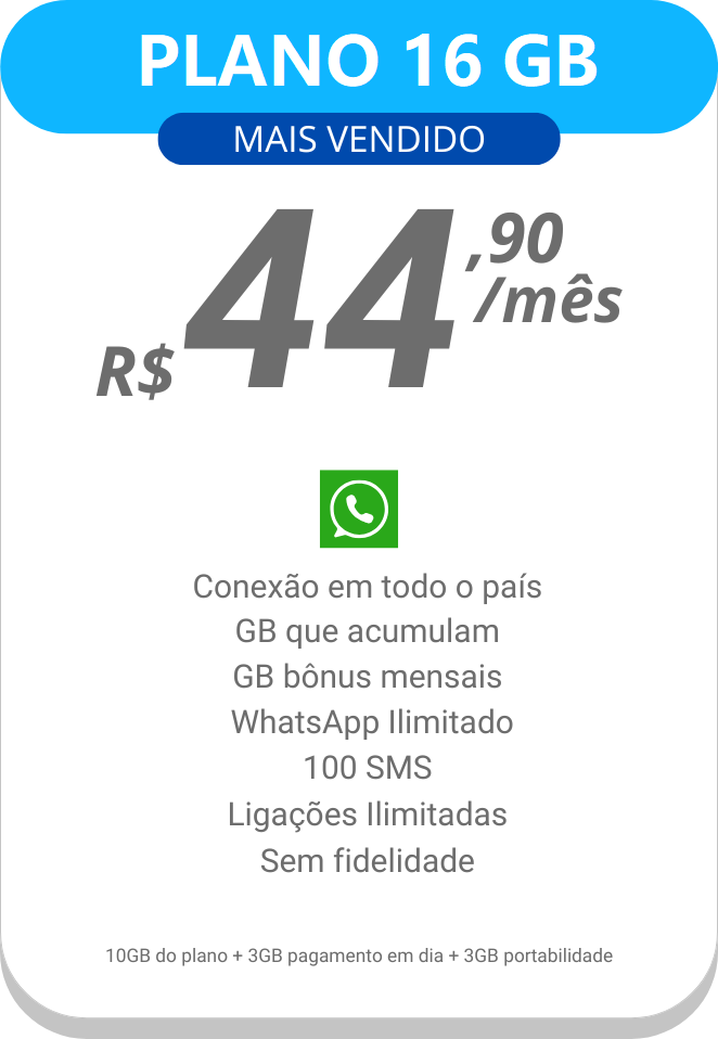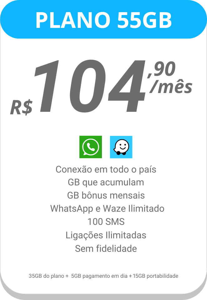Adquira seu chip e aproveite nossos planos com cobertura nacional e bônus mensais para dados e aplicativos.